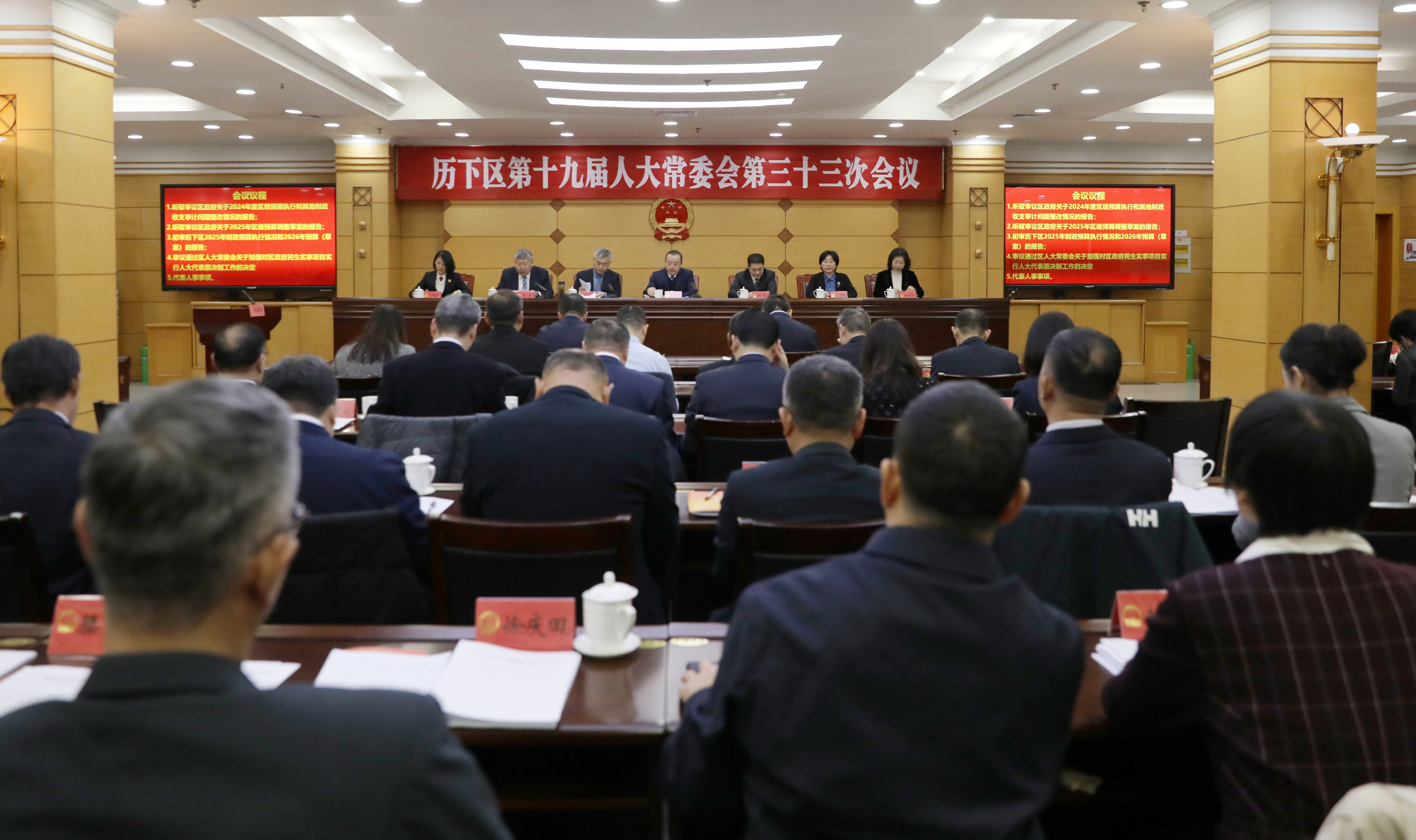 1月13日上午,区第十九届人大常委会第三十三次会议在历下大厦三楼中心会议室召开。区人大常委会主任吕英伟,副主任王文利、李素婷、吴强参加会议;区人大常委会副主任候选人提名人选刘军、仵爱之,区法院院长严琳琳列席会议。 会议听取审议了区政府关于2024年度区级预算执行和其他财政收支审计问题整改情况的报告;会议审议通过了区政府关于2025年区级预算调整草案的报告;会议审议了历下区2025年预算执行情况和2026年预算草案的报告;会议审议通过了区人大常委会关于加强对区政府民生实事项目实行人大代表票决制工作的决定草案;会议补选了出席济南市第十八届人民代表大会代表;会议还表决了人事事项,并进行了宪法宣誓。 |