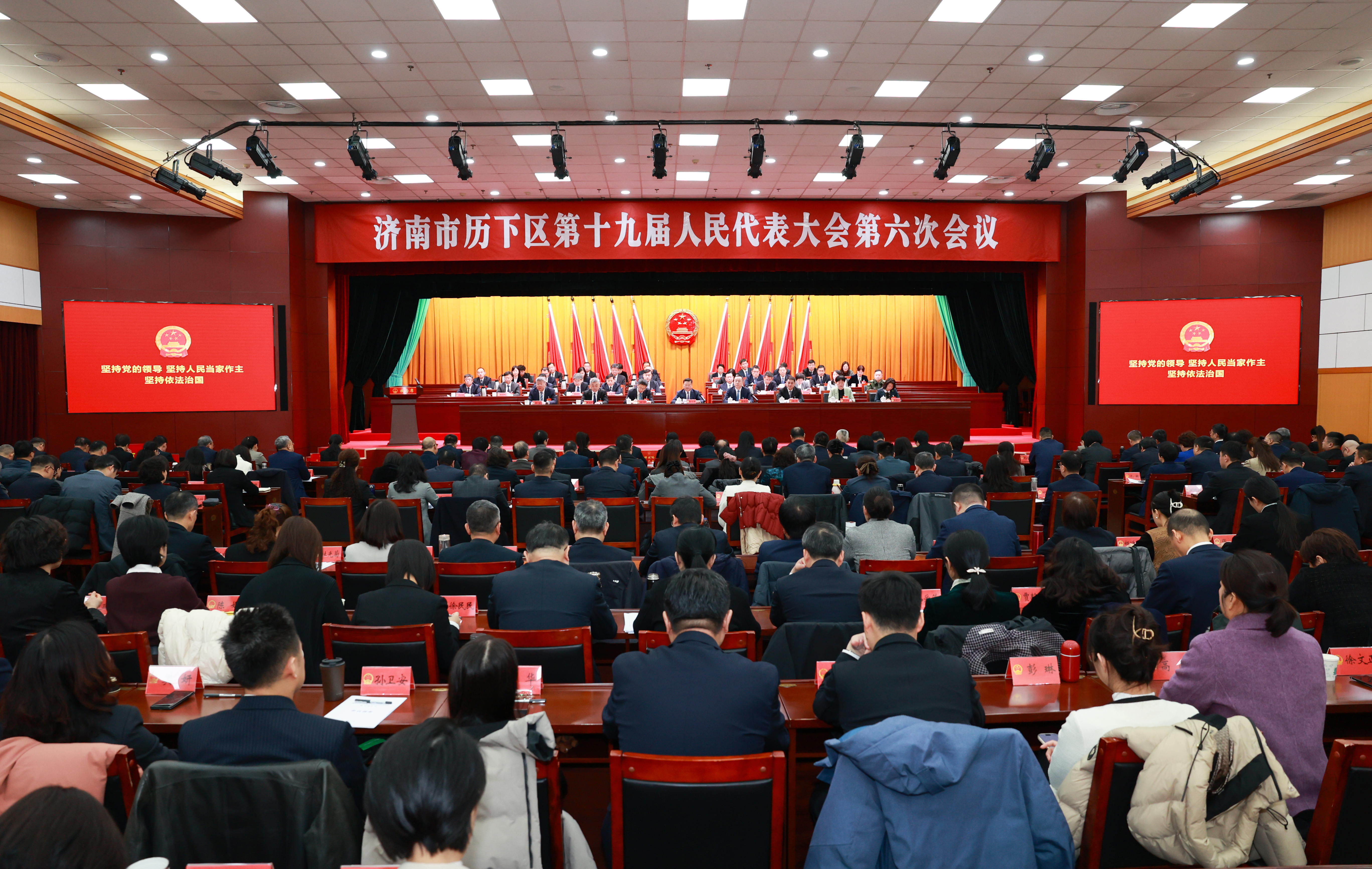 2月6日上午,济南市历下区第十九届人民代表大会第六次会议圆满完成各项议程,在历下大厦四楼礼堂闭幕。 大会主席团常务主席杨传军、吕英伟、吴剑、刘军、王文利、李素婷、吴强、仵爱之在主席台前排就座。出席大会并在主席台就座的领导同志有:赵治文、王勇、王海清、孙华、张晓刚、赵冬梅、王树刚、朱英涛、刘俊刚、刘心海、王若曦、房星、严琳琳等。 大会主席团常务主席吕英伟主持会议。大会应到代表283名,实到代表253名,符合法定人数。 大会表决通过了大会选举总监票人、监票人名单,公布了总计票人、计票人名单;选举刘军、仵爱之(女)为济南市历下区第十九届人民代表大会常务委员会副主任,在热烈的掌声中,新当选人员到台前与代表见面。大会以举手表决的方式,表决通过了仵爱之(女)为济南市历下区第十九届人民代表大会教育科学文化卫生委员会主任委员、民族侨务外事委员会主任委员,刘军为济南市历下区第十九届人民代表大会社会建设委员会主任委员;表决通过了议案审查报告、关于济南市历下区人民政府工作报告的决议、关于济南市历下区国民经济和社会发展第十五个五年规划纲要的决议、关于济南市历下区2025年国民经济和社会发展计划执行情况与2026年计划的决议、关于济南市历下区2025年预算执行情况和2026年预算的决议、关于济南市历下区人大常委会工作报告的决议、关于济南市历下区人民法院工作报告的决议、关于济南市历下区人民检察院工作报告的决议、济南市历下区2026年民生实事项目决议等。 大会完成各项议程后,区委书记杨传军作了讲话。他指出,这次会议是一次高举旗帜、凝心聚力、务实高效、团结奋进的大会。过去一年,全区上下坚持以习近平新时代中国特色社会主义思想为指导,深入学习贯彻党的二十大和二十届历次全会精神,推动经济运行稳中向好、社会大局和谐稳定,“十四五”规划实现圆满收官。这些成绩的取得,凝结着全体人大代表的智慧和汗水,区人大及其常委会为全区经济社会高质量发展和民主法治建设作出了重要贡献,区委对区人大工作是满意的,对区人大取得的成绩是充分肯定的。 杨传军强调,做好今年工作、奋力实现“十五五”良好开局,意义重大。全区上下要以“项目赋能年”为总牵引,全力在开局之年拼出新气象、干出新业绩。要旗帜鲜明讲政治,在把准方向、筑牢忠诚上展现新担当,坚持不懈用党的创新理论武装头脑、指导实践,确保各项工作始终沿着正确方向前进。要聚焦发展求突破,在服务大局、履职尽责上展现新作为,锚定地区生产总值增长目标,聚力攻坚明府城、中央商务区、历下经开区三大主阵地的项目建设,加速构建现代化产业体系,持续优化营商环境。要用心用情惠民生,在践行宗旨、造福群众上实现新提升,着力解决好就业、教育、医疗等群众急难愁盼问题,精细化推进城市治理,统筹好发展与安全。要从严从实强根基,在自身建设、提升能力上树立新形象,锤炼务实作风,提升履职本领,凝聚奋进合力,营造风清气正、担当实干的良好氛围。 杨传军指出,区委将一如既往加强和改进对人大工作的领导,全力支持人大依法行使职权。区人大及其常委会要牢牢把握“四个机关”定位要求,围绕中心、服务大局,以高质量履职彰显制度优势。各级各部门要加强同区人大有关方面的协调配合,汇聚起做好人大工作的强大力量。“一府一委两院”要自觉接受人大监督,严格执行人大决议。全体人大代表要牢记使命、不负重托,在为民服务中展现新风貌、新作为。 杨传军最后强调,新征程扬帆启航,新使命重任在肩。让我们更加紧密地团结在以习近平同志为核心的党中央周围,在省委、市委的坚强领导下,马不停蹄、阔步前进,为建设新时代社会主义现代化典范城区作出新的更大贡献! 会场全体起立,奏唱中华人民共和国国歌。吕英伟宣布:济南市历下区第十九届人民代表大会第六次会议闭幕!